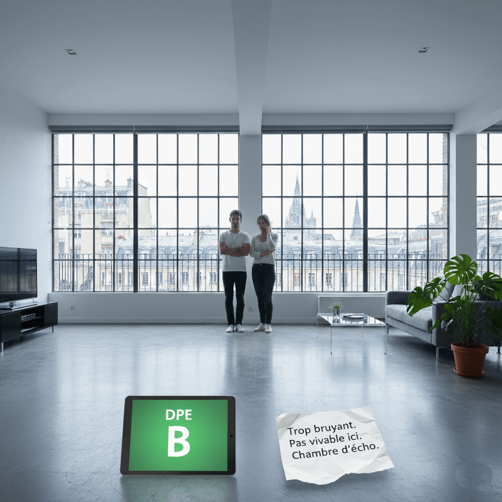Chacun intervient en silo, focalisé uniquement sur son expertise, sans vision d’ensemble. À chaque passage de témoin, votre vision initiale se dilue et les coûts augmentent. L’exemple le plus frappant ? Ce loft classé DPE B sur le papier : une réussite thermique indéniable, mais un enfer acoustique au quotidien. Une réussite technique, certes, mais un échec de projet de vie.